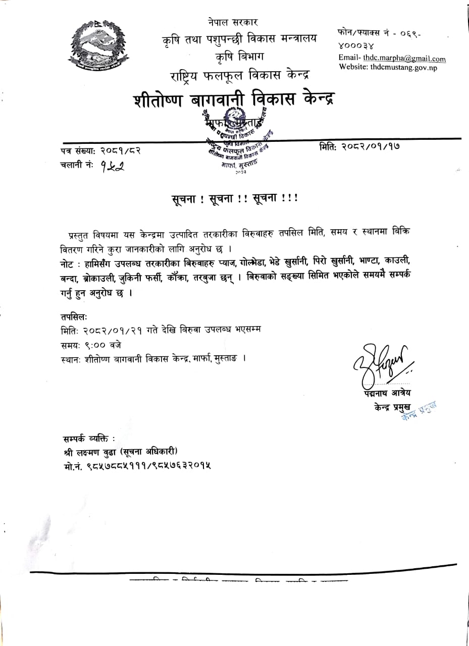 तरकारीका विरुवाहरु बिक्रि बितरण सम्बन्धी सूचना