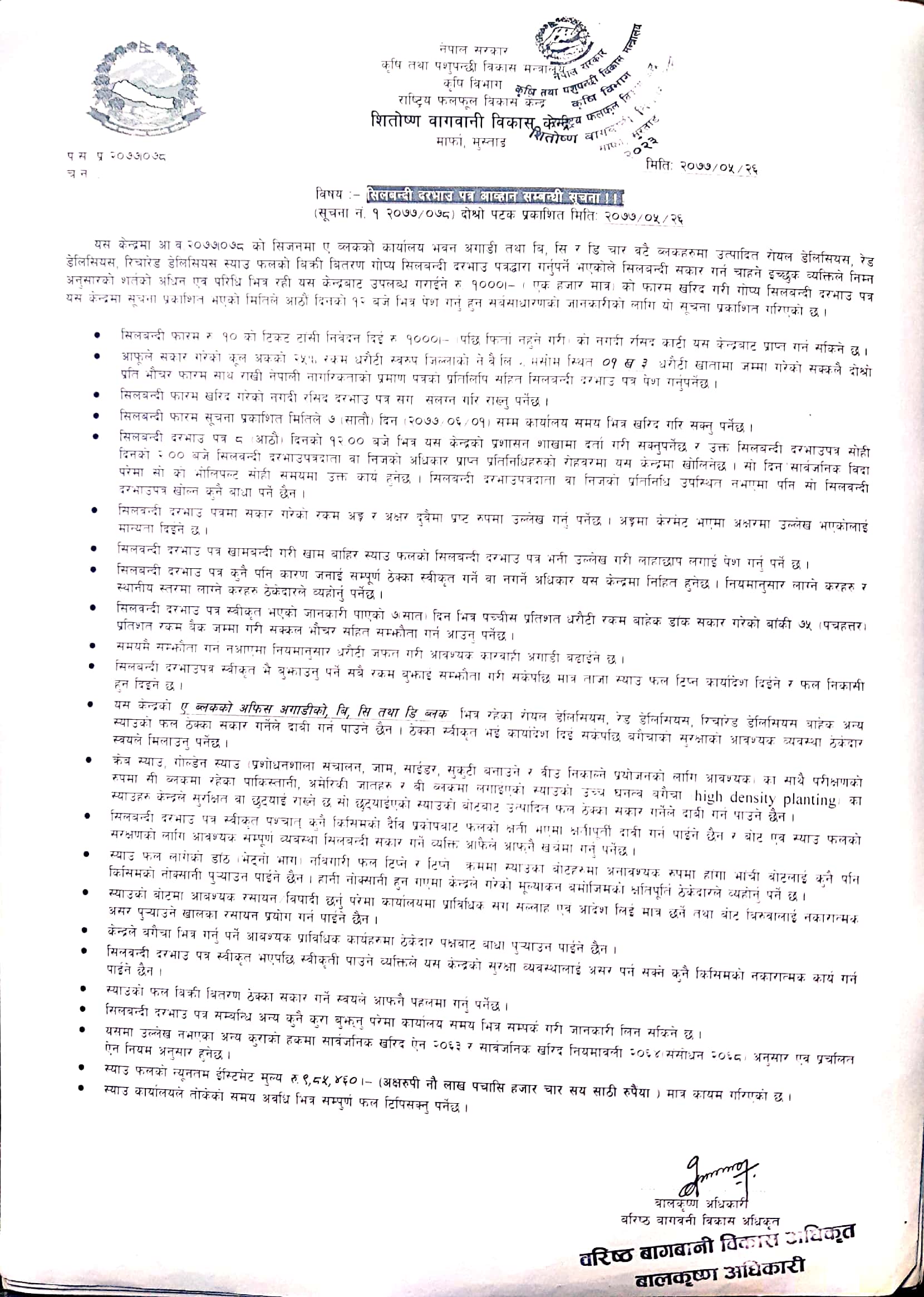 सिलबन्दी दरभाउ पत्र आव्हान (स्याउ पुन: टेन्डर) 2077-05-26 Closed !!!